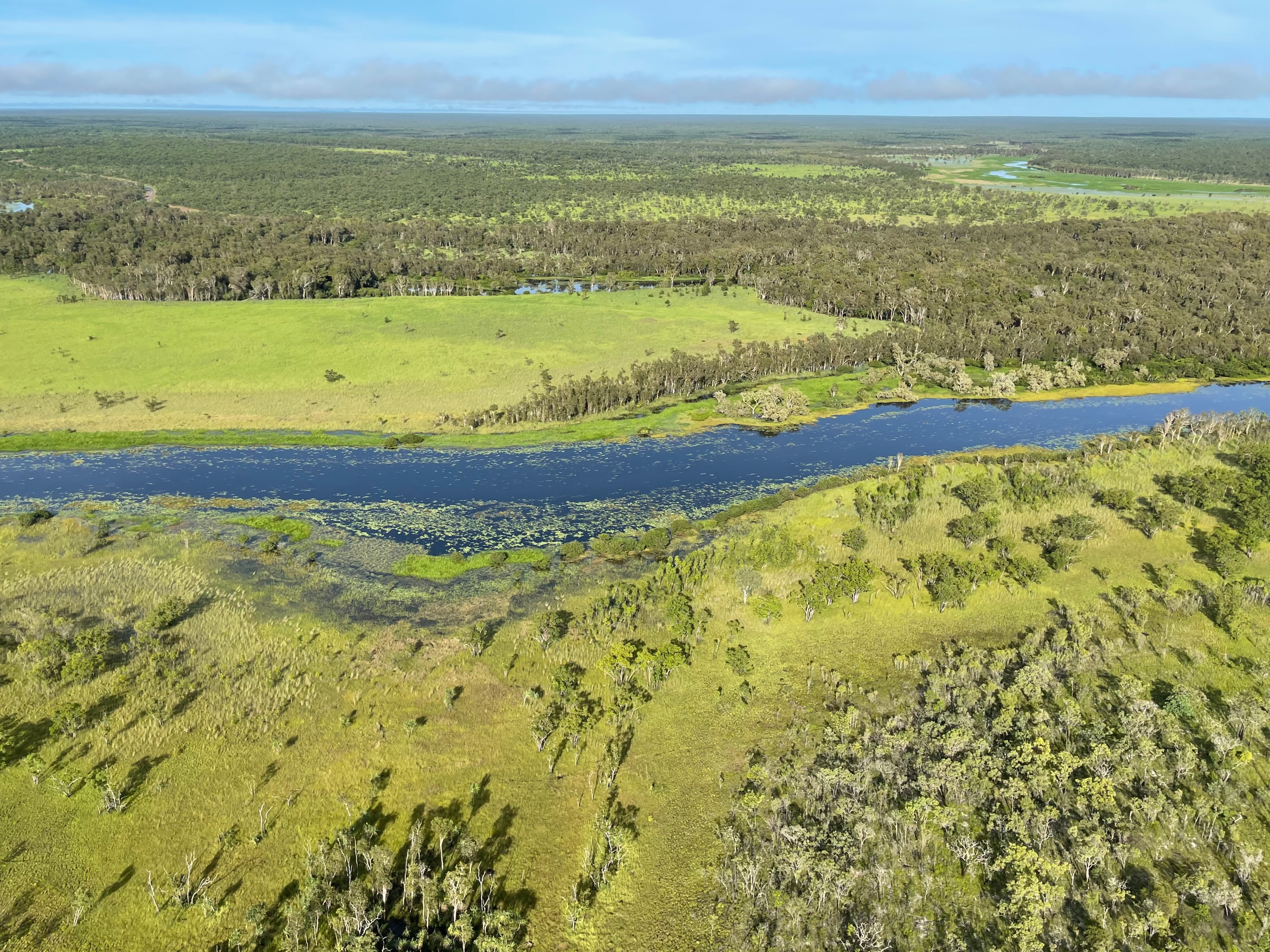 By stripping vegetation, digging wallows, and trampling soils, they reduce habitat quality in these biodiverse environments. Captured by a survey drone in remote East Arnhem, this image reveals the scale of disturbance.