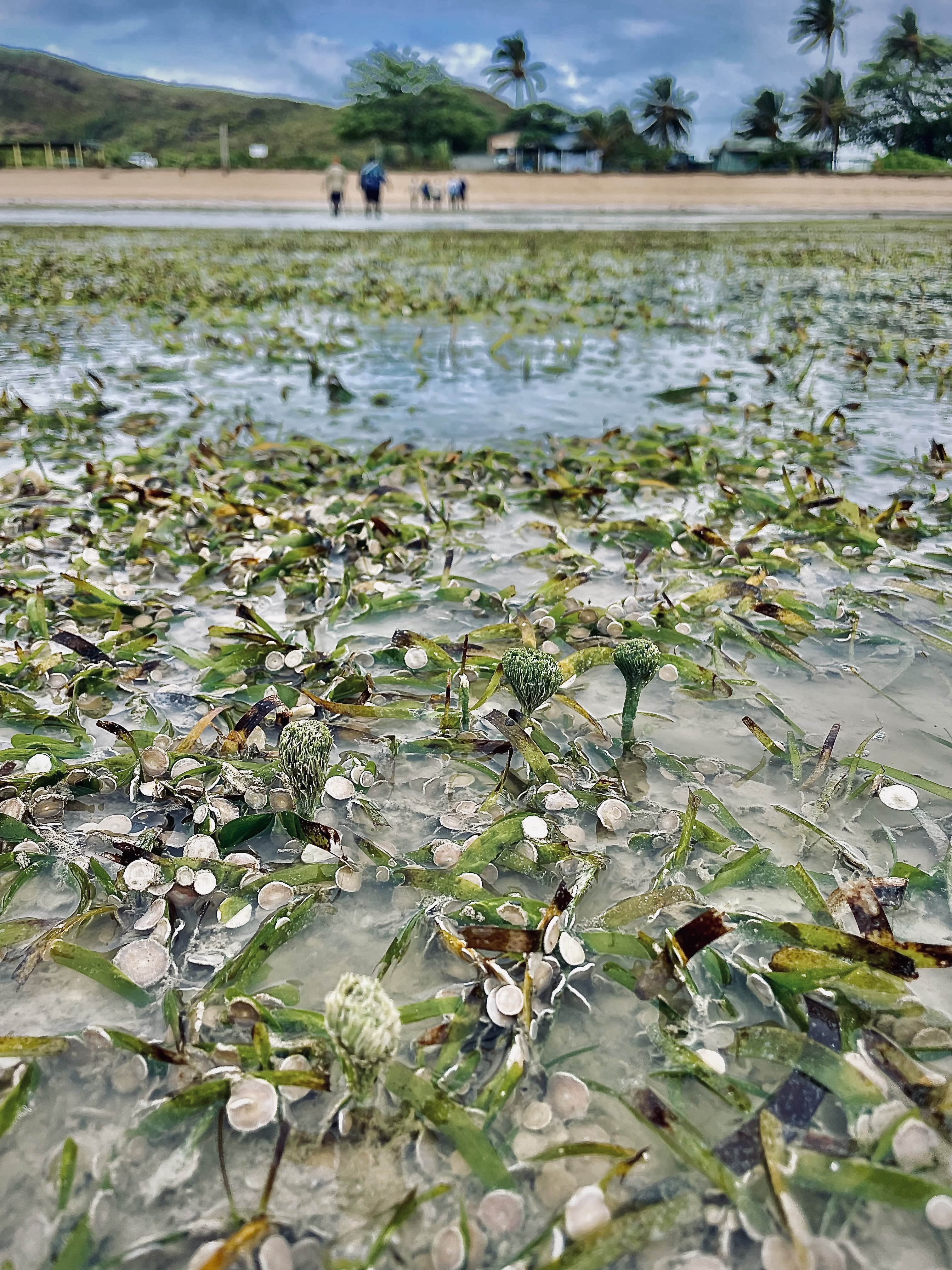 In the foreground, seagrass, forams and calcareous algae sit in the intertidal zone, revealing the fine detail and productivity of a habitat that is both ecologically rich and culturally important.