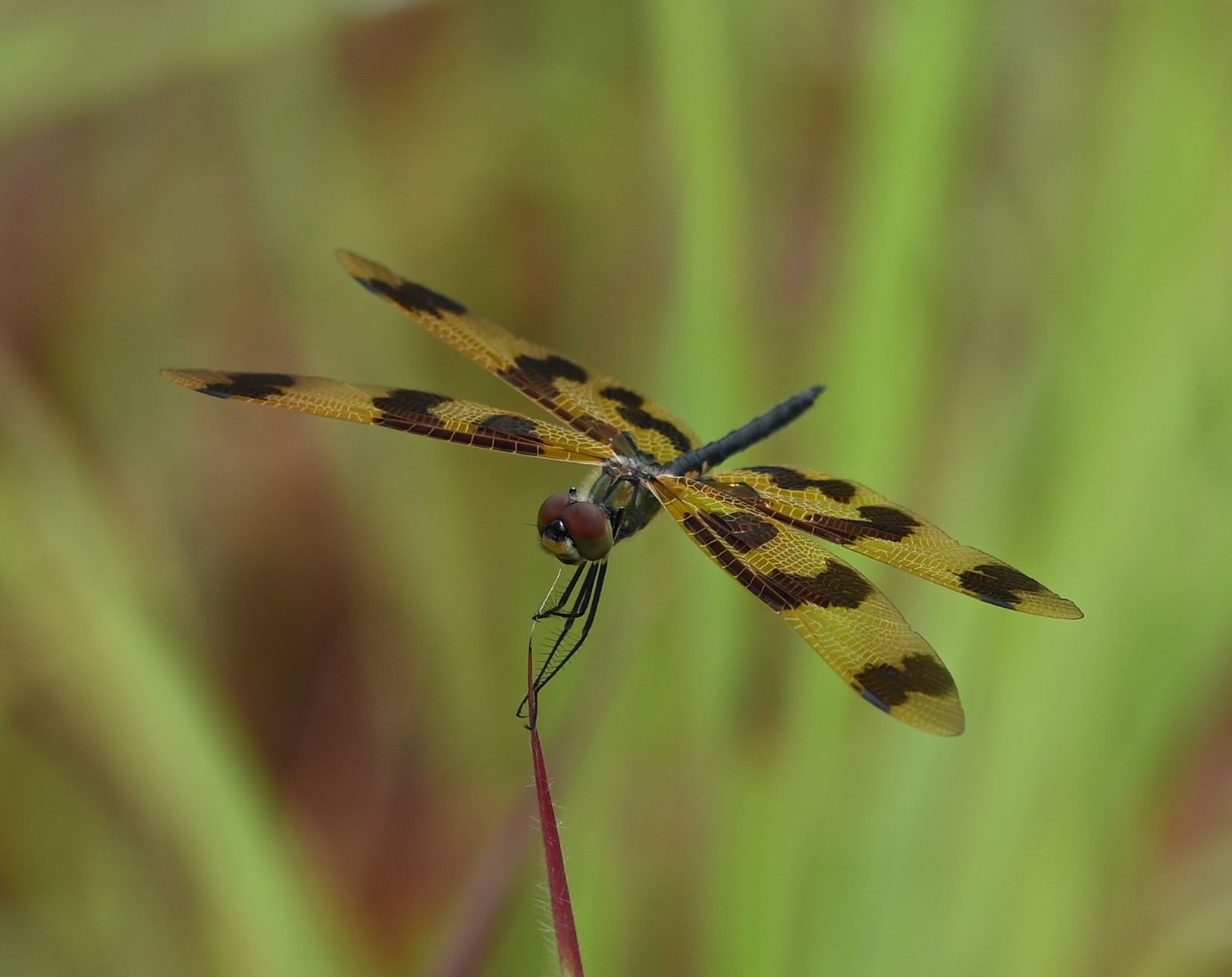 I photographed this dragonfly, the graphic flutterer, Rhyothemis graphiptera, on the Adelaide River floodplain in February.