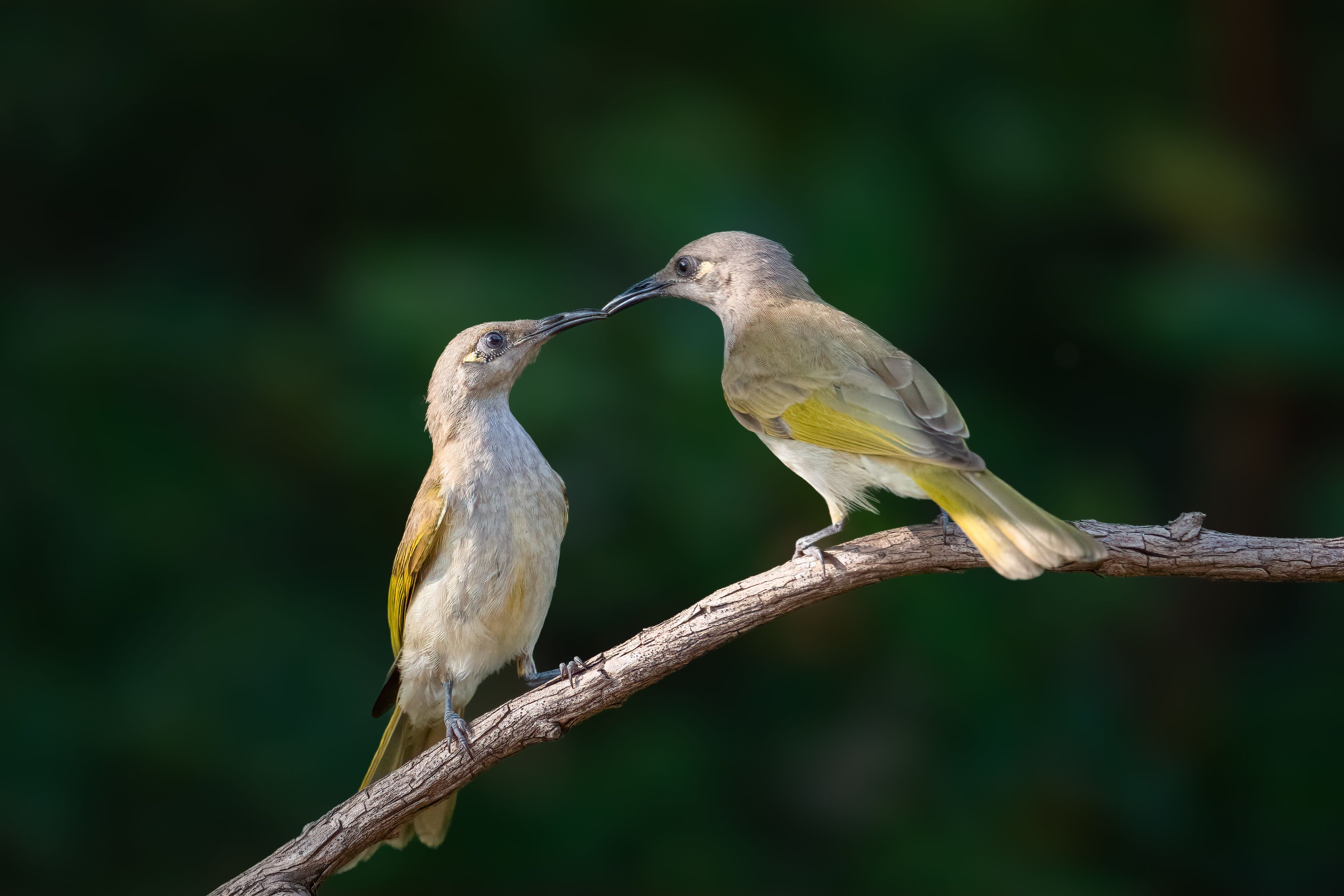 Taken at East Point in Darwin, these two Brown Honeyeaters paused at a water trough long enough to share what looked suspiciously like a kiss.